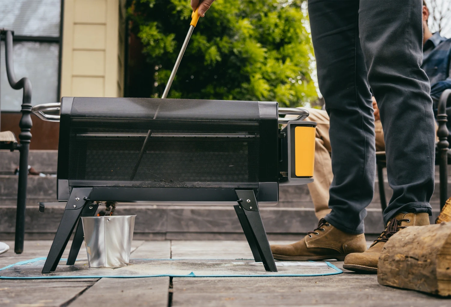 Bagsiden er udstyret med en buet spids, som lige passer på selve brændselsristen, så du nemt kan regulere højden på risten afhængigt af, om det er kul eller træ, der bruges i FirePit+.