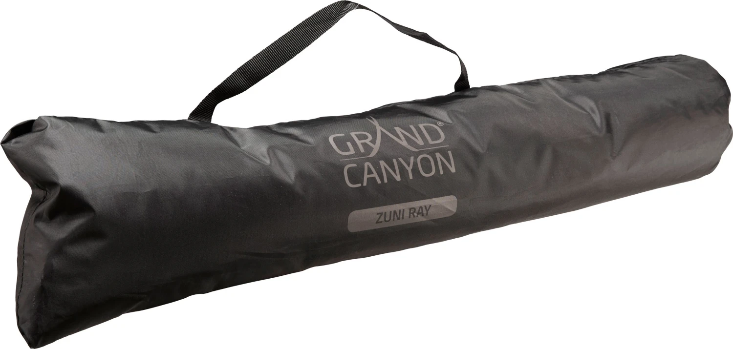 Grand Canyon Zuni Ray Tarp er fremstillet af en slidstærk polyesterdug, der på bagsiden er forsynet med en kraftig PU-belægning for at gøre materialet vandtæt. Alle syninger er naturligvis ekstra forseglede, så oversejlet er 100% vandtæt og tåler et vandsøjletryk svarende til minimum 3.000 mm og spidsbelastningspunkterne er ekstra forstærket.