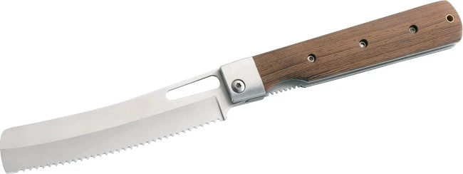 En foldekniv som denne ser du ikke så tit: Denne Herbertz Camping Bread Knife er udstyret med en 11 cm. langt og savtakket blad, der er særligt velegnet til at skære brød.