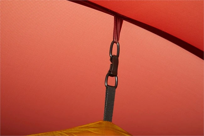 Inderteltet entreres gennem den store dør med tovejs regulerbare lynlås, som er forsynet med et ventilerende myggenet, så du selv kan regulere graden af ventilation. Selve inderteltet har en bredde op til imponerende 145 cm, en længde på 220 cm. og en højde på op til hele 100 cm, så der er masser af plads til to standard liggeunderlag og evt. lidt bagage i den ene ende og i siden af inderteltet. Inderteltet er lavet af ekstremt fint og let silikoniseret 15 Denier Nylon Ripstop, som blot vejer 26 gram/m2! Dette materiale er både åndbart og vandresistent, så eventuel kondens fra oversejlet ikke umiddelbart finder ind i inderteltet. Inderteltet er udstyret med myggenetspanel øverst modsat døren og er i øvrigt forsynet med flere inderlommer til alle de medbragte småting, man gerne hurtigt skal kunne komme til.