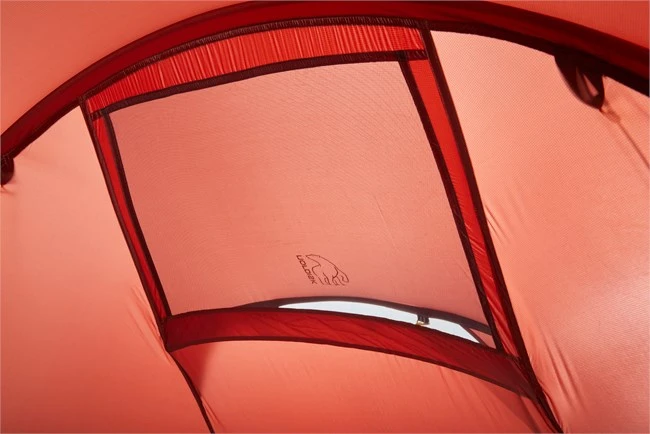Lynlåsen til indgangen i oversejlet ligger beskyttet bag stormflap, som fikseres magnetisk. En både let og meget velfungerende løsning. Den rette ventilation i teltet opnås ved hjælp af ventilskakten i hver ende af oversejlet, som sammen med netpanelet og lynlåsåbningen i inderteltet sørger for den fornødne luftgennemstrømning.