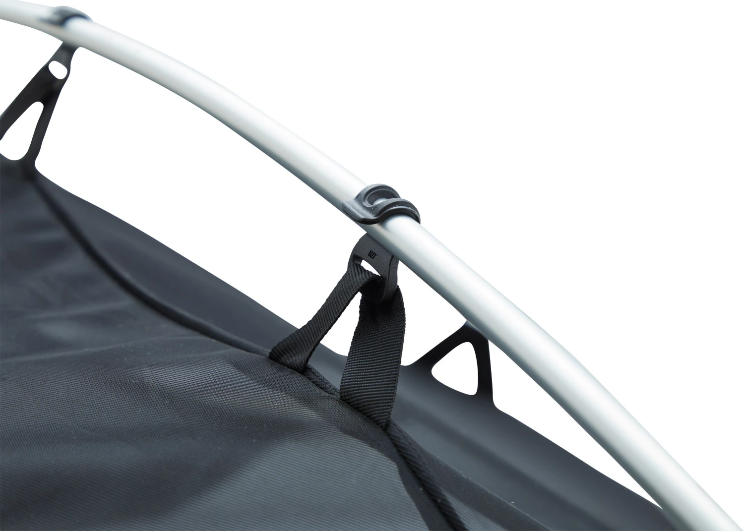 Otra 2 PU hurtigt rejses hurtigt vha. to diagonale og to langsgående stænger, som er fremstillet af den eksklusive DAC Featherlite® NSL™, hvori inderteltet hurtigt klipses op. Den ekstra stærke anodisering af aluminiumsmaterialet gør, at stængerne ikke korroderer, og den særlige stangkonfiguration forøger markant teltets indvendige volumen, da den bidrager til mere loftshøjde og stejlere vægge. Stængerne ledes ned i et forstærket Delrin® -øje for enden, hvor der er monteret en indstillelig rem, således teltet kan strammes op, når duggen falder.