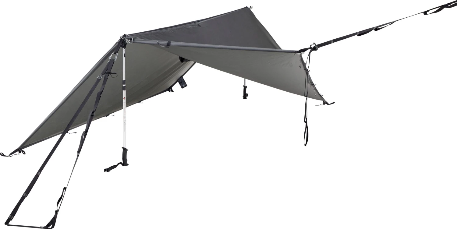 Denne uhyre lette og bomstærke Voss Tech Tarp fra Nordisk er ét af de mest innovative produkter, vi har set i mange år! Det er nemlig en tarp, som både kan bruges som sådan i alle mulige og umulige forskellige afskygninger, som simpelt pyramidetelt, som hængekøje med eller uden tag, som teltunderlag, som båre til transport af tilskadekomne eller det tunge grej eller blot som poncho – anvendelsesmulighederne er i sandhed mange og det er nærmest kun fantasien, der sætter grænser!