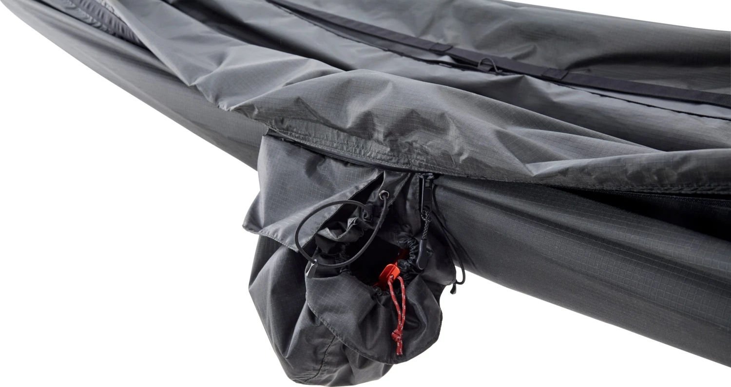 Bruges Voss Tech Tarp netop som tarp er konfigurationsmulighederne tæt på uendelige. Med de i alt 16 ekstra forstærkede webbing-løkker langs kanten plus fikseringsmulighederne henover midten af tarpen og i kombination med den robuste og vandresistente, tovejs lynlås, kan tarpen rejses på et utal af måder med enten trekking-stave, tarpstænger eller passende grene.