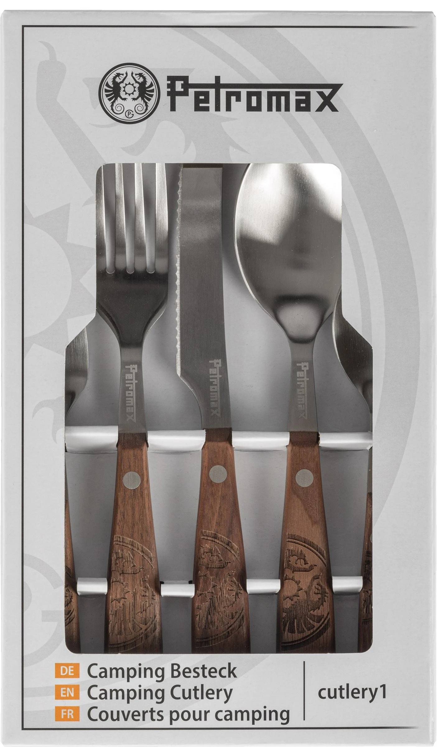 Campingbestikket med det laserskårede Petromax-logo er ikke alene yderst funktionelt, det passer også bare perfekt ind i dit udekøkken takket være dets originale karakter. Og hvis du mellem måltiderne vil have styr på bestikket, kan du trække en strop igennem øjerne nederst på hvert bestik, hvilket også gør, at du som helhed kan hænge bestikket fra dig.