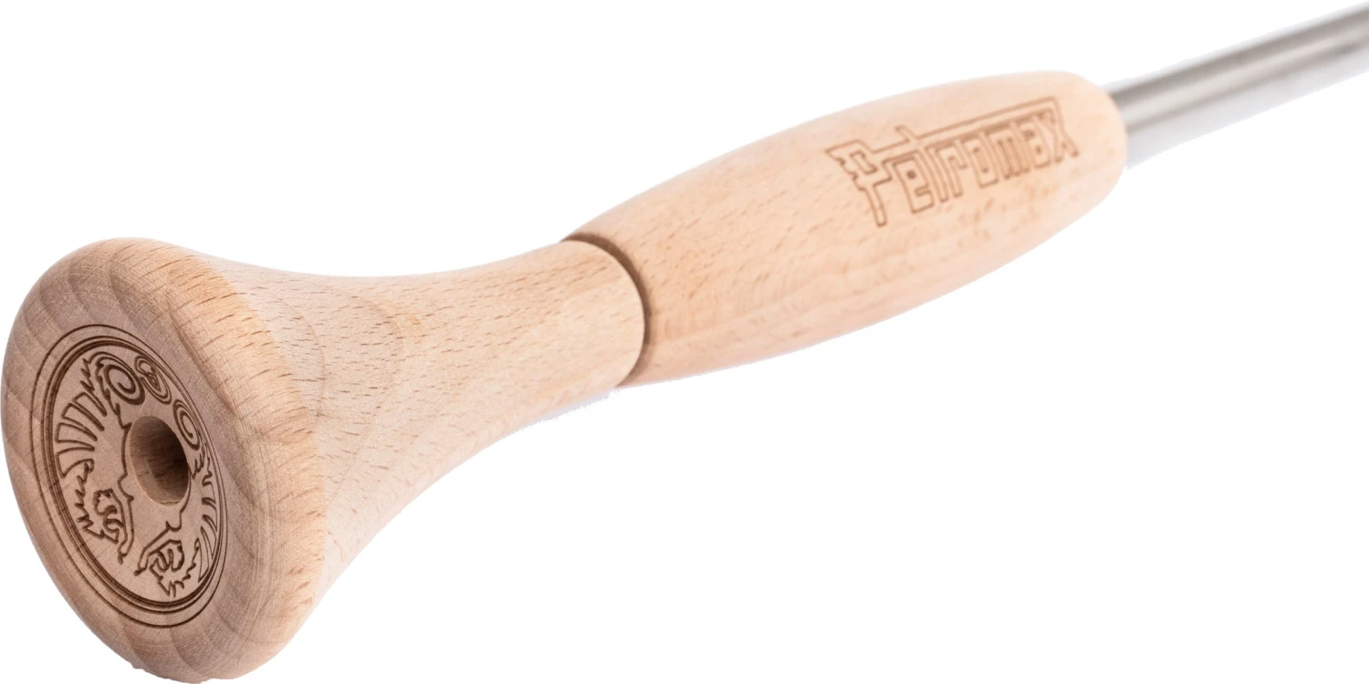 Petromax Fire Blow Pipe er udstyret med håndtag og mundstykke af smukt forarbejdet birketræ, som er prydet med Petromax’ ikoniske dragelogo.