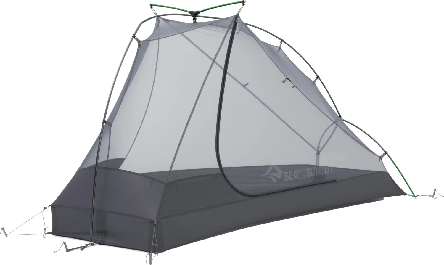Inderteltet, som hurtigt og problemfrit hænges op i teltstængerne ved hjælp af ultralette Delrin® -klips, er af ventilerende 15D Knit Mesh™, som både giver maksimal ventilation og samtidig holder alt kryb ude. Inderteltet er selvfølgelig udstyret med lommer til de personlige ejendele, og som en smart detalje kan den ene af teltets pakkeposer klipses fast i hjørnet af inderteltet og bruges som ekstra opbevaringsplads, ligesom stangposen kan hænges op i toppen af teltet og bruges til behagelig og diffus belysning i teltet, når din pandelampe placeres i posen. Det er typisk Sea to Summit, og det er altså bare smart!