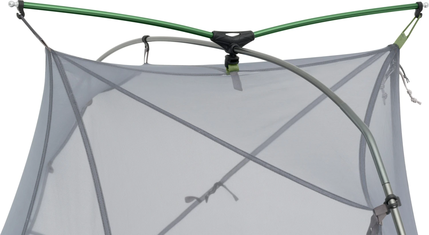 Tension Ridge Architecture® bygger på en langsgående midterstang, som i fodenden i et særligt fordelingsled deler sig i to, og så den geniale tværligger i toppen af teltet, som sikrer de karakteristiske stejle vægge og hermed i den grad udnytter den indvendige plads i teltet. Og den fantastisk gode plads og højde i teltet vil ligeledes bidrage til et rigtig godt indeklima, trods teltets relativt beskedne størrelse.