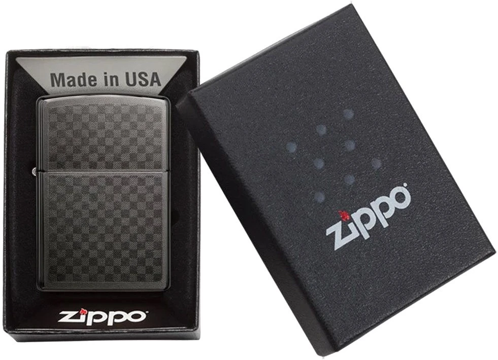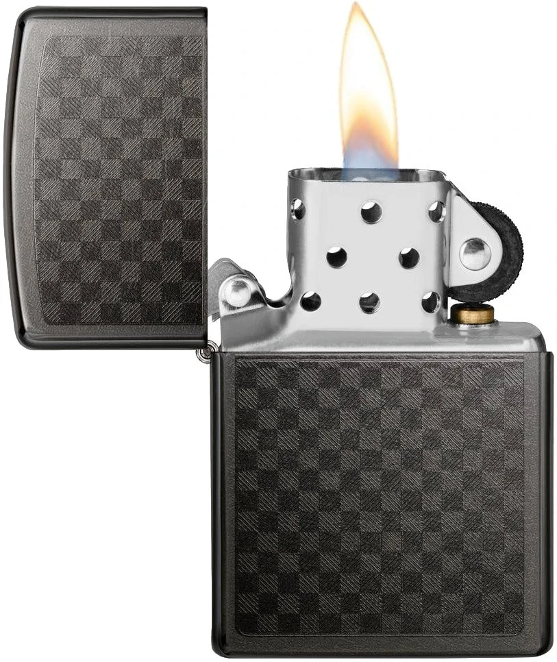 Iced Carbon Fiber Design Lighter leveres ufyldt, så Zippo Lighter Fluid skal købes separat.